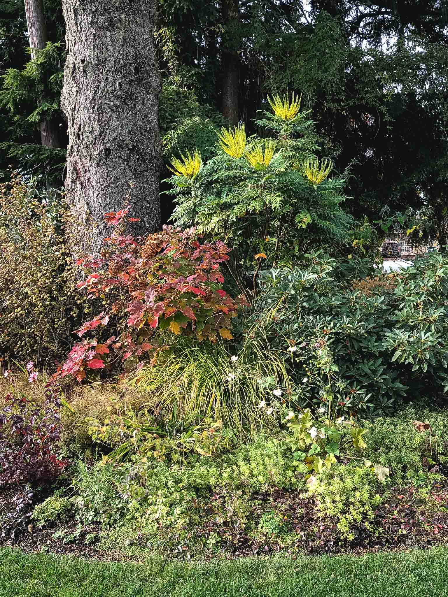 Image: Mahonia x media ‘Charity’ blooms in winter, supporting hummingbirds and early-emerging bees.