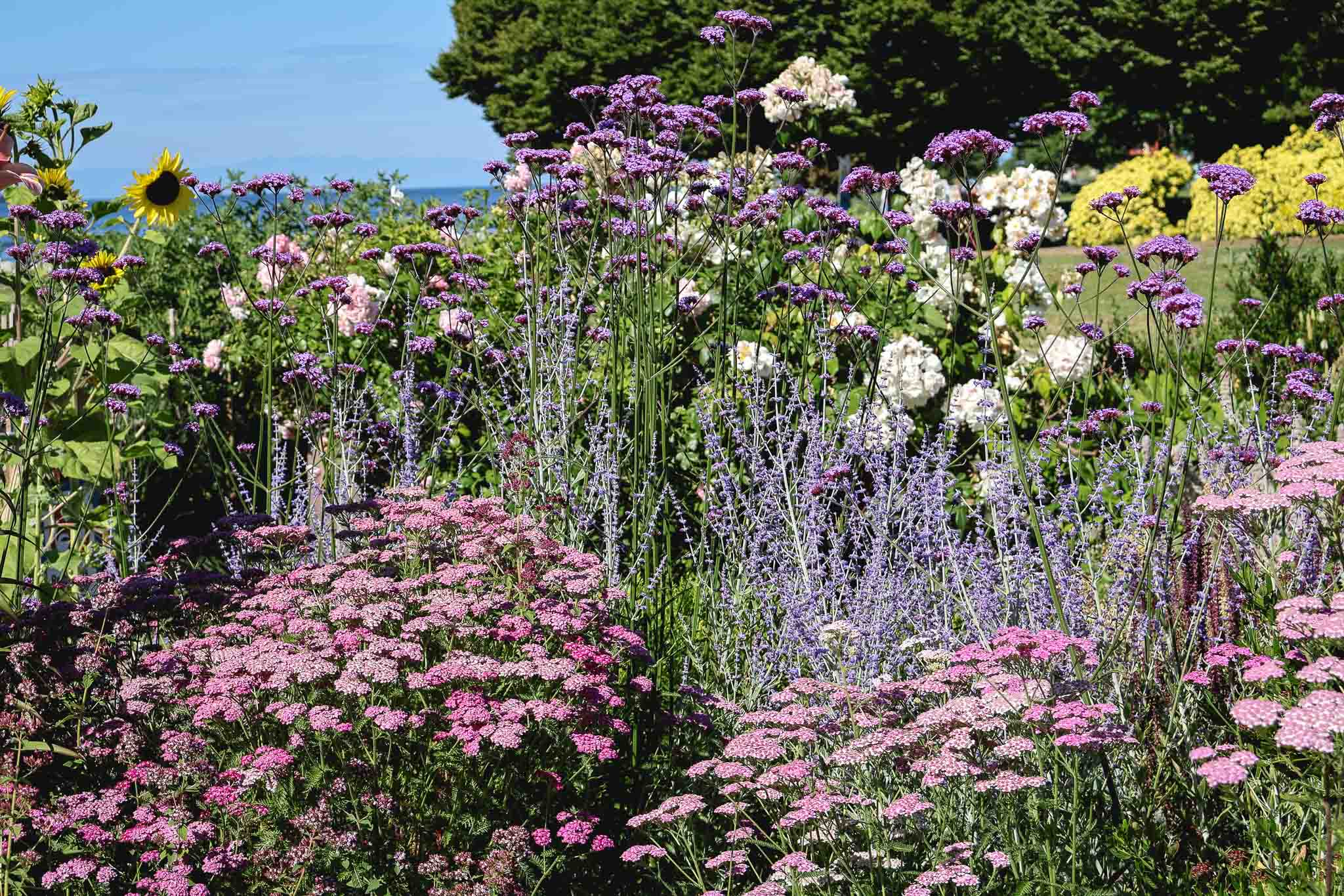 Image: This pollinator garden in West Vancouver includes lots of easy-access yarrow, as well as some sunflower and rose in the back.