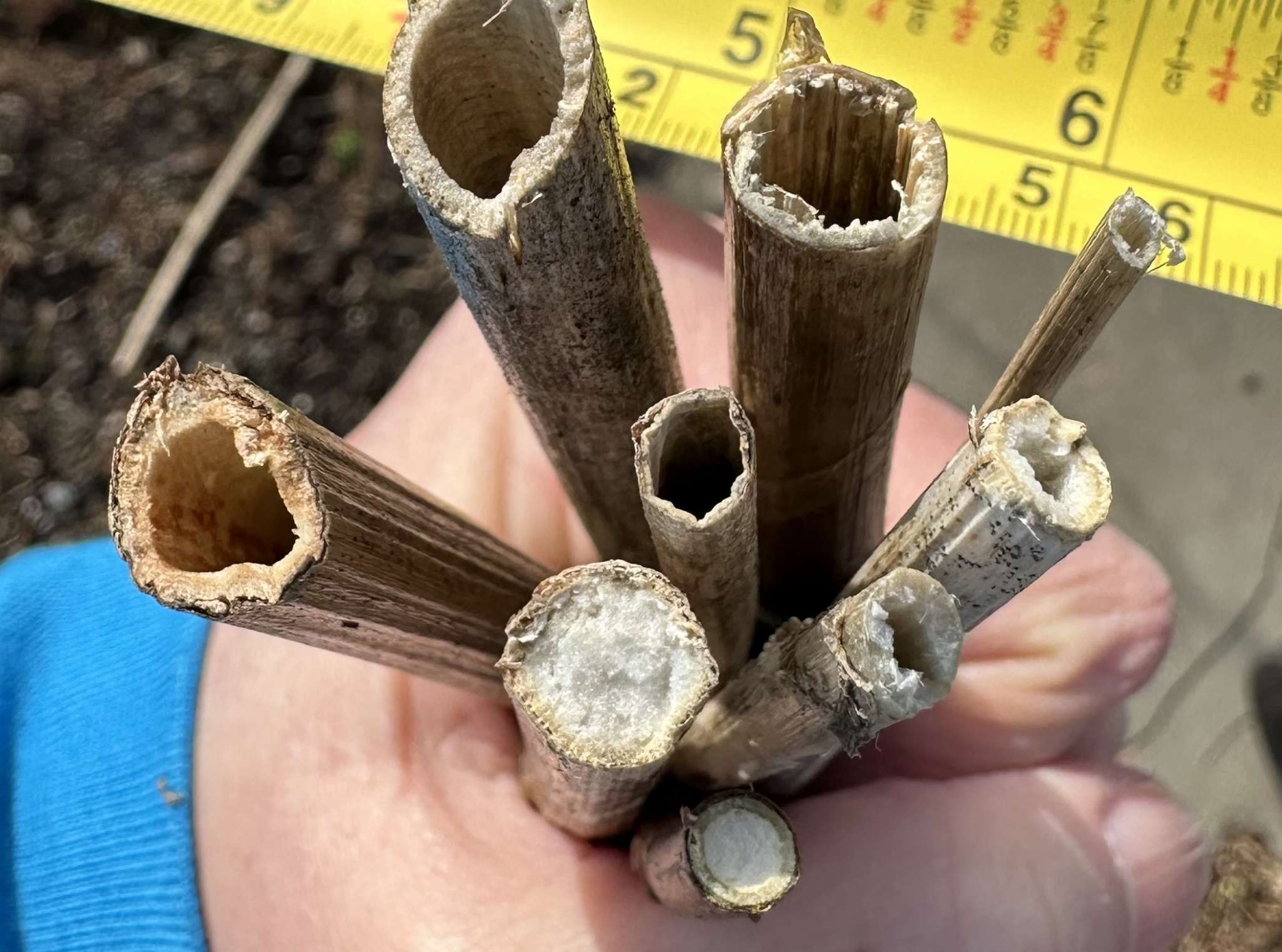 Consider growing plants with hollow stems, and accept the temporary presence of ground-nesting bees, or leaf damage by nest-building leafcutter bees. See information and images on our pollinators page.
