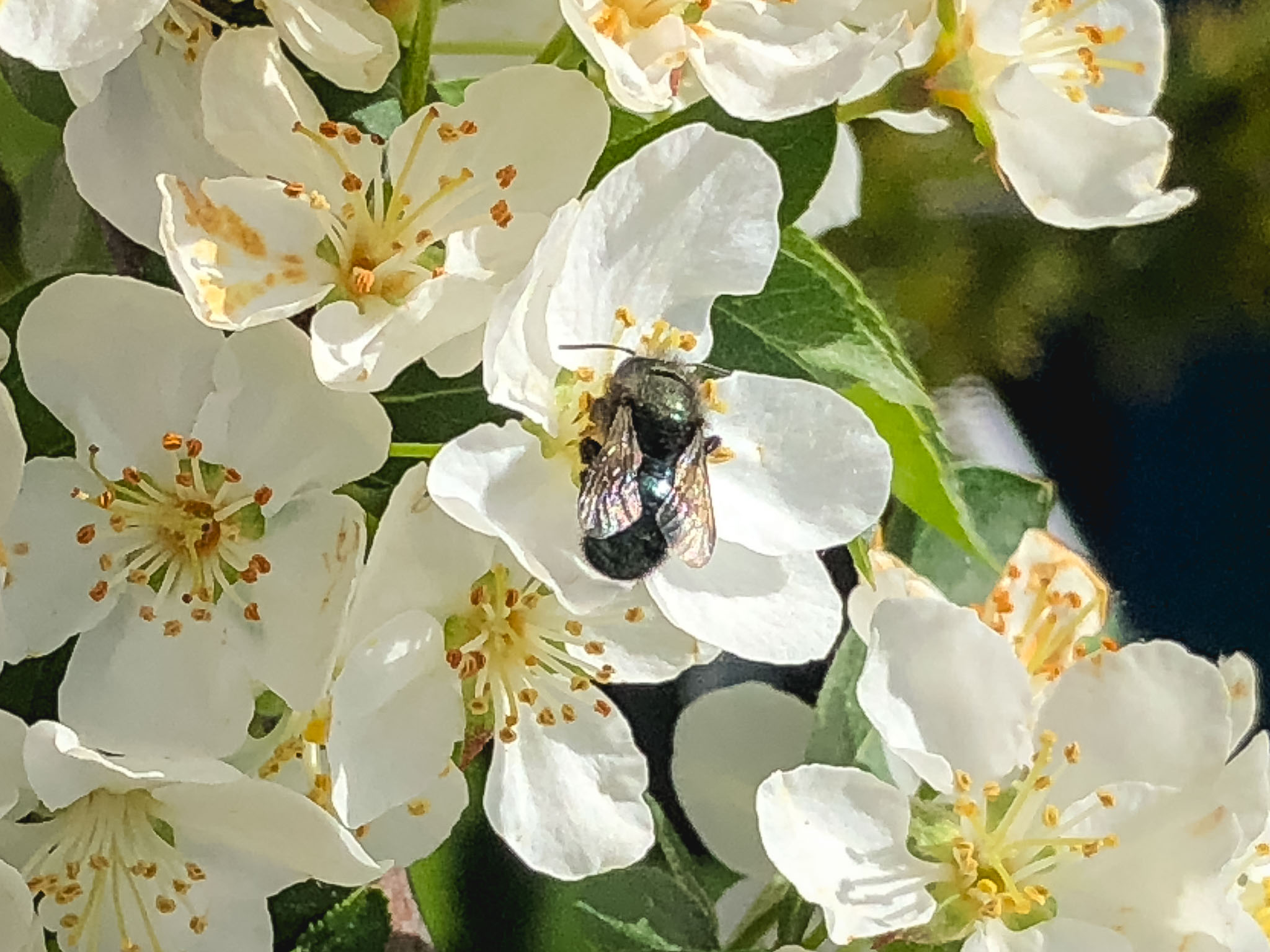 Female bees are the most important pollinators in our region, because they collect pollen and nectar to feed their offspring. This means they visit more flowers per unit time and are more likely to contact and move pollen than other flower visitors. Of course, any animal that visits a flower can pollinate, including flies, wasps, butterflies, beetles, and birds. Many of these are beneficial beyond pollination; for example flies and wasps are amazing at pest control.